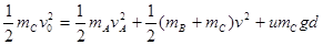 (3)将A、B、C做为系统。对于整个过程,由动量守恒及功能关系: