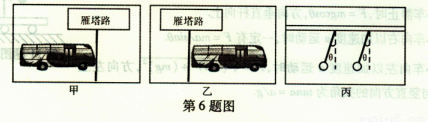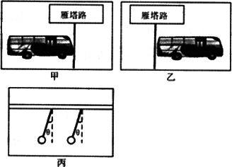 图中甲、乙是一质量m=6×103kg的公共汽车在t=0和t=4s末两个时刻的两张照片.当t=0时,汽车刚启动(汽车的运动可看成匀加速直线运动).图丙是车内横杆上悬挂的手拉环的图象,测得θ=30°.根据题中提供的信息,无法估算出的物理量是( )A.汽车的长度
