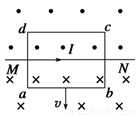 在图中,MN为一根固定的通有恒定电流I的长直导线,导线框abcd与MN在同一竖直平面内(彼此绝缘),当导线框以竖直向下的速度v经过图示位置时,线框中感应电流方向如何?