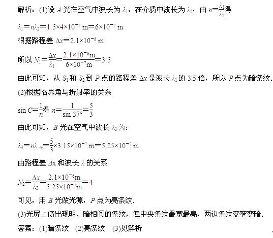 (2)已知B光在某种介质中波长为3.15×10-7 m.当B光从这种介质射向空气时,临界角为37°.