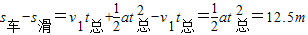 £¨2£©»¬¿éÔÚÕâ¶Îʱ¼äÄڵĶԵØÎ»ÒÆ£¬s»¬=v1t×Ü=10m