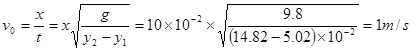 板处由静止释放,再得到痕迹C.若测得木板每次移动距离x=10.00 cm,A、B间距离y1=5.02 cm,B、C间距离y2=14.82 cm.请回答以下问题(g=9.80 m/s2)![]()