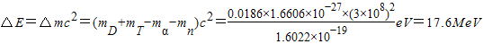 答:核反应所释放出来的能量为17.6MeV.