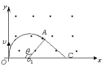 如图所示,在第一象限有垂直于xoy平面向外的匀强磁场,一质量为m,电量为+q的粒子从O点沿y轴正方向以速度v射入磁场。测得它通过通过x轴的C点与点O的距离为L(不计重力,)。