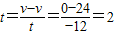解答:解:由题意可知,它的初速度是24m/s,加速度是-12m/s2,根据公式:v=v+at,得: