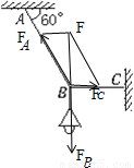 分析B点受力:?绳A拉力FA、绳C拉力FC和灯拉力FG如图所示