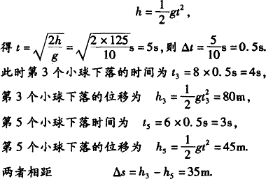 一矿井深为125 m,在井口每隔一定时间自由下落一个小球,当第11个小球刚从井口下落时,第1个小球恰好到达井底.则相邻两个小球开始下落的时间间隔为________s,这时第3个小球和第5个小球相隔________m.(g取10 m/s2)