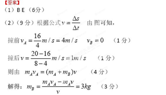 B发生碰撞 并一起运动,它们的位移一时间图象如图乙所示(规定向右为位移的正方向), 则物体B的质量为多少?