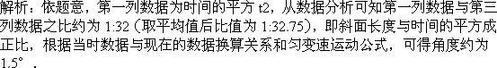 mm,假设1个时间单位相当于现在的0.5 s.由此可以推测实验时光滑斜面的长度至少为________m,斜面的倾角约为度__________.(g取10 m /s2)
