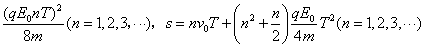 带电量为q、质量为m的带电粒子,以水平初速v0沿电场线方向射入电场中,场强随时间的变化规律如图所示(从粒子刚进入电场开始计时)。求经过时间t=nT(n为正整数)带电粒子的末动能和前进的位移。