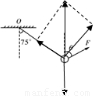 如图所示,一小球用轻绳悬于?点,用力F拉住小球,使悬线保持偏离竖直方向75°角,且小球始终处于平衡状态,为了使F有最小值,F与竖直方向的夹角θ应该是( )A.90°