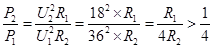 某白炽灯泡的额定功率与额定电压分别为36W与36V.若把此灯泡接到输出电压为18V的电源两端,则灯泡消耗的电功率 ( )