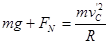 (2)若传送带以5m/s的速度绕顺时针匀速度转动,且传送带足够长,求物块到达最高点C对轨道的压力。
