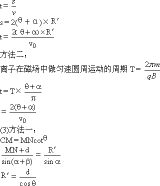 ¡¡¡¡ (1)ÉèÑØCM·½ÏòÔ˶¯µÄÀë×ÓÔڴų¡ÖÐ×öÔ²ÖÜÔ˶¯µÄ¹ìµÀ°ë¾¶ÎªR¡¡¡¡ ¡¡¡¡´Å³¡·½Ïò´¹Ö±Ö½ÃæÏòÍâ ¡¡¡¡ (2)ÉèÑØCNÔ˶¯µÄÀë×ÓËÙ¶È´óСΪv£¬Ôڴų¡ÖеĹìµÀ°ë¾¶Îª¡¡¡¡