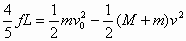 解析:B固定时:对A由动量定理 B不固定时:A相对B滑动距离4L/5时,AB相对静止,此时共同速度为V,由动量守恒定律 又由能的转化和守恒定律 由以上三式可得M=4m. |