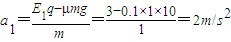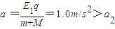 【答案】分析:(1)根据牛顿第二定律分别求出车的最大加速度和货物与车共同运动的加速度,判断出货物与车开始阶段不能以相同的加速度运动.根据牛顿第二定律结合运动学公式分别求出2s后货物和车的位移和速度.改变电场后,根据牛顿第二牛顿定律再次求出车和货物的加速度,得出货物和车速度相等时所经历的时间,根据牛顿第二定律判断出车和货物能以相同的加速度做匀减速直线运动,求出匀减速直线运动的时间,从而得出第二次电场作用的时间.