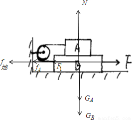 【答案】分析:用力F水平向右拉B匀速运动时,A、B两物体分别处于平衡状态,分别对物体A,B进行受力分析,利用平衡条件分别列式分析.