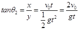点评:解决本题的关键掌握处理平抛运动的方法,平抛运动在水平方向上做匀速直线运动,在竖直方向上做自由落体运动.以及知道速度与水平方向夹角的正切值是同一位置位移与水平方向夹角的正切值的两倍.