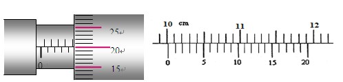 如图:螺旋测微器的示数为 mm;游标卡尺的示数为 cm。![]()