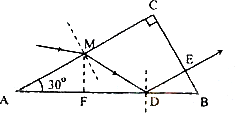 在此截面所在的平面内,一条光线以45°的入射角从AC边的中点M射入棱镜射出的点的位置(不考虑光线沿原来路返回的情况).