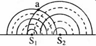 在水槽中形成的波形如图所示,其中实线表示波峰,虚线表示波谷,则