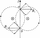 通电导线ab处在M、N所产生的合磁场中,MN连线上部磁场水平向右,下部磁场水平向左,如图答所示,再由左手定则可知,a端转向纸里,b端转向纸外。