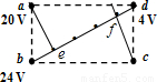 【答案】分析:在匀强电场中将某一线段等分同时就将该线段两端的电势差等分,故可将bd五等分,求出e、f的电势,连接ae和cf,则cf∥ae,φc=φf=8v.