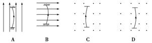一根很容易形变的弹性导线,两端固定,导线中通有电流,方向如图中箭头所示,当没有磁场时,导线呈直线状态;当分别加上竖直向上、水平向右或垂直于纸面向外的匀强磁场时,描述导线状态的四个图示中正确的是( )![]()