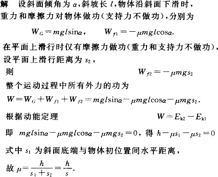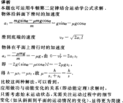 一个物体从斜面上高h处由静止滑下并紧接着在水平面上滑行一段距离后停止,量得停止处对开始运动处的水平距离为s(如图),不考虑物体滑至斜面底端的碰撞作用,并认为斜面与水平面对物体的摩擦因数相同,求摩擦因数μ.