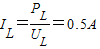 流过滑动变阻器的电流:I=IA-IL=0.5A