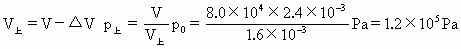 Pa.现保持温度不变,握住活塞杆,缓慢向上提起,使气缸离开桌面静止.此时上面气室体积减少了ΔV=0.80×