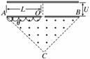 如图所示,在一底边长为2L,θ=45°的等腰三角形区域内(O为底边中点)有垂直纸面向外的匀强磁场。现有一质量为m、电量为q的带正电粒子从静止开始经过电势差为U的电场加速后,从O点垂直于AB进入磁场,不计重力与空气阻力的影响。求