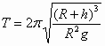 神舟五号载人飞船在绕地球飞行的第5圈进行变轨,由原来的椭圆轨道变为距地面高度h=342 km的圆形轨道.已知地球半径R=6.37×103 km,地面处的重力加速度g=10 m/s2.试导出飞船在上述圆轨道上运行的周期T的公式(用h、R、g表示),然后计算周期的数值(保留两位有效数字).
