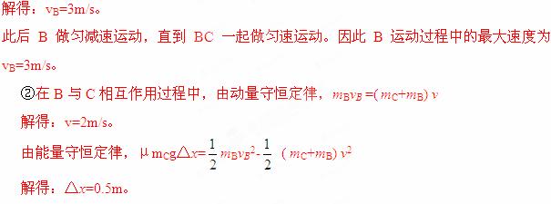 ② 若B、C间的动摩擦因数为0.6,则C在B上滑动的距离。![]()