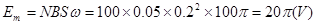 发电机转子是100匝边长为20cm的正方形线圈,将它置于B=0.05T的匀强磁场中,绕着垂直于磁场方向的轴以