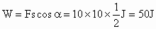 静止在光滑水平面上的物体质量为25kg,在与水平面成60°角斜向上的力F作用下运动10s,已知F=10N,求在这10s内力F所做的功.
