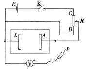 µçÔ´E(µç¶¯ÊÆÎª12V£¬ÄÚ×è²»¼Æ)£¬Ä¾°åN(°åÉÏ´ÓÏÂÍùÉÏÒÀ´Îµþ·Å°×Ö½¡¢¸´Ð´Ö½¡¢µ¼µçÖ½¸÷Ò»ÕÅ)£¬Á½¸ö½ðÊôÌõA¡¢B(ƽÐзÅÖÃÔÚµ¼µçÖ½ÉÏ£¬Óëµ¼µçÖ½½Ó´¥Á¼ºÃ£¬ÓÃ×÷µç¼«)£¬»¬Ïß±ä×èÆ÷R(Æä×Ü×èֵСÓÚÁ½Æ½Ðе缫¼äµ¼µçÖ½µÄµç×è)£¬Ö±Á÷µçѹ±íV(Á¿³ÌΪ6V£¬ÄÚ×èºÜ´ó£¬Æä¸º½ÓÏßÖùÓëB¼«ÏàÁ¬£¬Õý½ÓÏßÖùÓë̽ÕëPÏàÁ¬)£¬¿ª¹ØK.ÏÖÒªÓÃͼÖÐÒÇÆ÷Ãè»æÁ½Æ½ÐнðÊôÌõAB¼äµç³¡ÖеĵÈÊÆÏß.AB¼äµÄµçѹҪÇóȡΪ6V.![]()