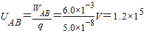 如果在某电场中将5.0×10-8C的正电荷由A点移到B点,电场力做6.0×10-3J的功,那么( )A.A、B两点间的电势差UAB=1.2×105V