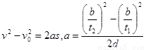 如图,为测量做匀加速直线运动小车的加速度,将宽度均为b的挡光片A、B固定在小车上,测得二者间距为d。当小车匀加速经过光电门时,测得两挡光片先后经过的时间分别为t1和t2,则小车加速度