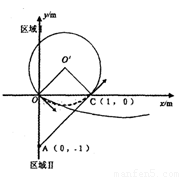 在水平光滑的绝缘桌面内建立如图所示的直角坐标系,将第I、第II象限合称为区域一,第III、IV象限合称为区域二,其中一个区域内有大小、方向均未标明的匀强电场,另一个区域内有大小为 2×10-2T、方向垂直于水平桌面的匀强磁场.把一个比荷为