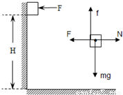 如图所示,水平恒力F=20N,把质量m=0.6kg的木块压在竖直墙上,木块离地面的高度H=6m.木块从静止开始向下作匀加速运动,经过2s到达地面.求:(1)木块下滑的加速度a的大小;