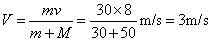 质量为30kg的小孩以8m/s的水平速度跳上一辆静止在水平轨道上的平板车,已知平板车的80kg,求小孩跳上车后他们共同的速度。