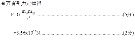 (7分)已知地球的质量为6.0x1024kg,太阳的质量为2.0x1030kg ,它们之间的距离为1.5x1011m. 试计算地球和太阳之间的万有引力的大小?(数量级正确即可,G=6.67x10-11Nm2/kg2)