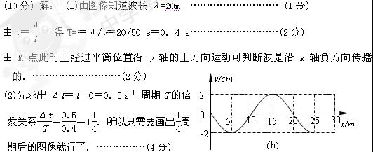 一列简谐横波在x轴上传播,波速为50 m/s,已知t=0时刻的波形图如图(a)所示,图中x=15m处的M质点此时正经过平衡位置沿y轴的正方向运动.![]()
