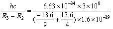 (2)三条光谱线中波长最长的光子能量最小,发生跃迁的两个能级的能量差最小,根据氢原子能级的分布规律可知,氢原子一定是从n=3的能级跃迁到n=2的能级.设波长为λ,由 h 得λ= =6.58×10-7m |