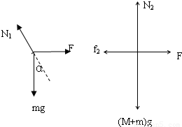C¡¢¶ÔÓÚÕûÌ壬Êܵ½×ÜÖØÁ¦£¨M+m£©g¡¢µØÃæµÄÖ§³ÖÁ¦N2¡¢¾²Ä¦²ÁÁ¦f2ºÍË®Æ½ÍÆÁ¦F£¬ÓÉÆ½ºâÌõ¼þµÃ£¬N2=£¨M+m£©g£¬f2=F£¬¿É¼û£¬µ±FÔö´óʱ£¬f2Öð½¥Ôö´óµ½Fm£®ÓÉÅ£¶ÙµÚÈý¶¨ÂɵÃÖª£¬µØÃæÊܵ½µÄѹÁ¦±£³Ö²»±ä£¬µØÃæ¸øÐ±ÃæÌåµÄĦ²ÁÁ¦ÓÉ0Öð½¥Ôö¼Óµ½Fm£®¹ÊC´íÎó£¬DÕýÈ·£®