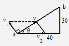 设小船达危险区域前,恰好到达对岸,如图所示,设合位移 ab方向与下游河岸成θ角,则 |