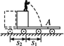 s1+s2=l,即v1t+v2t=l 则v2= 车的水平位移为s2=v2t=1.6×0.5 m=0.8 m. 人落到车上A点的过程,系统水平方向的动量守恒(水平方向系统没受外力,而竖直方向支持力大于重力,合力不为零),人落到车上前的水平速度仍为v1,车的速度为v2,落到车上后设它们的共同速度为v,根据水平方向动量守恒得 mv1-Mv2=(M+m)v,则v=0. 故人落到车上A点站定后车的速度为零. |