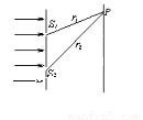 如图所示,用频率为 v的单色光垂直照射双缝,在光屏上的P点出现第3级暗条纹.已知光速为c ,则P点到双缝的距离之差r2﹣r1 为 ![]()