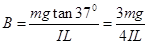 一质量为m的导体棒MN两端分别放在固定的光滑圆形导轨上,两导轨平行且间距为L,导轨处在竖直向上的匀强磁场中,当导体棒中通一自右向左的电流I时,导体棒静止在与竖直方向成37o角的导轨上,取sin37o=0.6,cos37o=0.8![]()
